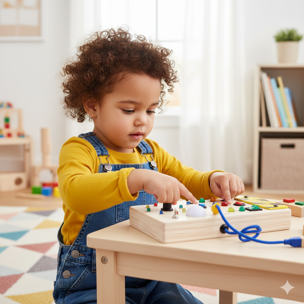 El tablero sensorial Montessori ayuda a desarrollar habilidades de coordinación básicas lo que incentiva al aprendizaje a corta edad manteniendo la atención de los niños de manera sana. A diferencia de las pantallas de las tabletas o los teléfonos celulares que ocasionan adicción.